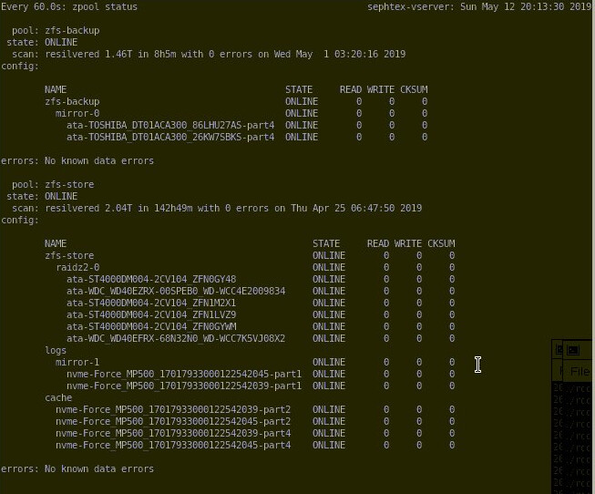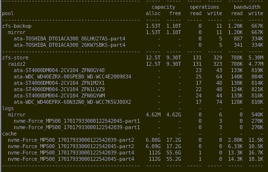 I added 6 other drives which are configured in a ZFS filesystem as raid-z2 where everything (except root) is running on.