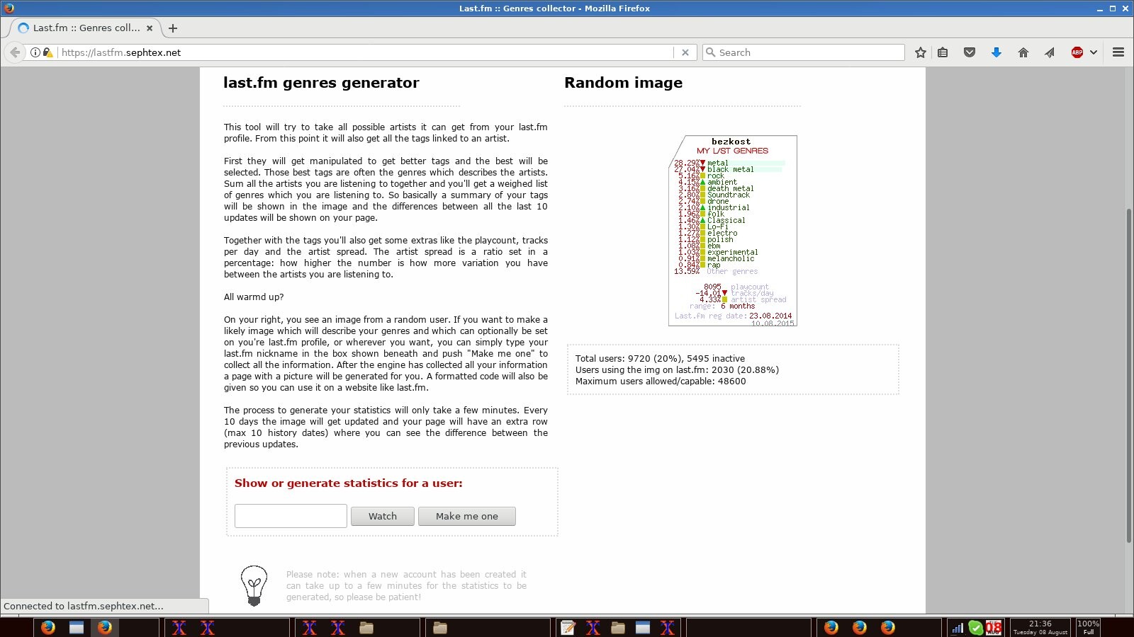 It was mainly a data-collection/data-mining project to retrieve the amount of genres (tags) a user was listening to.